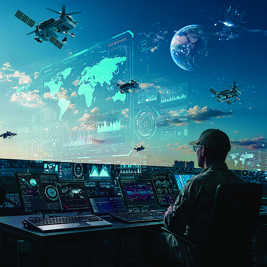 De ce fait, la supériorité militaire future reposera sur la maîtrise des mégadonnées/Big Data, des algorithmes avancés, des logiciels et des infrastructures « Cloud », et ne se limitera pas aux seuls armements. Ces technologies modernes, relevant de l'intelligence artificielle, permettent la domination de l'information en filtrant d'énormes quantités de données et en les transformant en renseignements exploitables pour la surveillance, le ciblage et la planification stratégique. Afin d'exploiter pleinement ces capacités, les gouvernements s'appuient de plus en plus sur des partenariats avec des entreprises privées, brouillant davantage la frontière entre autorité étatique et influence des entreprises. La guerre en Ukraine illustre parfaitement cette dynamique : des entreprises privées comme Starlink fournissent à l’État des systèmes de communication, tandis que Palantir collecte des données sur le champ de bataille pour appuyer les opérations de ciblage.