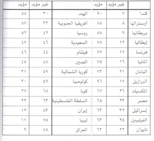 والحال أن تاريخ استطلاعات الرأي الحديثة نسبياً في أميركا دأب على أن يعطي عن العرب عموماً صورة سلبية, فمنذ العام 1993 دلّت دراسة استطلاعية أجراها مركز “غالوب” على أثر عملية التفجير ضد مركز التجارة العالمي في أميركا أن 39 في المئة فقط من الأميركيين ما برحوا يؤيدون العرب, مقابل 32 في المئة منهم يعادونهم ويقفون ضدّهم. وكان سبق لشبكة “اي.بي.سي” الإخبارية أن أجرت خلال حرب الخليج دراسة استطلاعية (شباط 1991) تبيّن لها من خلالها أن 43 في المئة من الأميركيين ينظرون بعين إيجابية الى العرب مقابل 41 في المئة منهم ينظرون بنظرة سلبية. أما النعوت التي أطلقها الأميركيون على العرب فجاءت على سلّم النسب المئوية كما يلي: