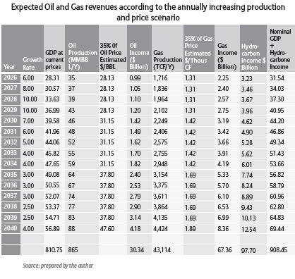 Production and revenue scenarios had to be adopted to estimate expected revenues and show the extent of their contribution to the GDP. Although revenues were lower than anticipated, mere GDP growth should stimulate the development of economic sectors and encourage more new investments.