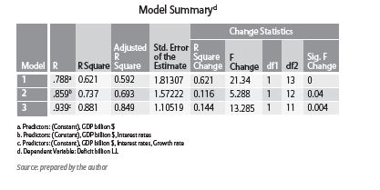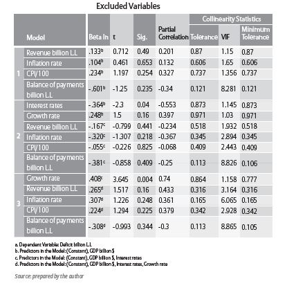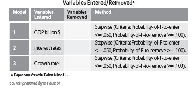 Furthermore, the empirical study, based on a simulation of the historical data of the three independent variables and the surplus/deficit calculation, shows that the public budget deficit will be renewed even though the GDP continues to rise.