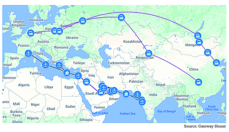 For India, IMEC is a structural escape hatch. By running directly westward through the UAE, Saudi Arabia, Jordan, and Israel, IMEC bypasses both Pakistan and Chinese-dominated hubs. If the corridor delivers on reliability, customs pre-clearance, and harmonized standards, it will tilt Eurasian trade flows in India’s favor. This matters strategically: Indian exporters currently depend on the Suez Canal route, which is vulnerable to blockages and competition from Chinese shipping alliances. IMEC would give India a geopolitical dividend, not just shorter transit, but symbolic elevation as the Asian anchor of a Western-aligned corridor. For Europe, the benefit is equally clear: IMEC offers entry points in Trieste, Marseille, or Genoa, avoiding reliance on Chinese-controlled Piraeus while diversifying away from Russian disruption of Eurasian land routes.26