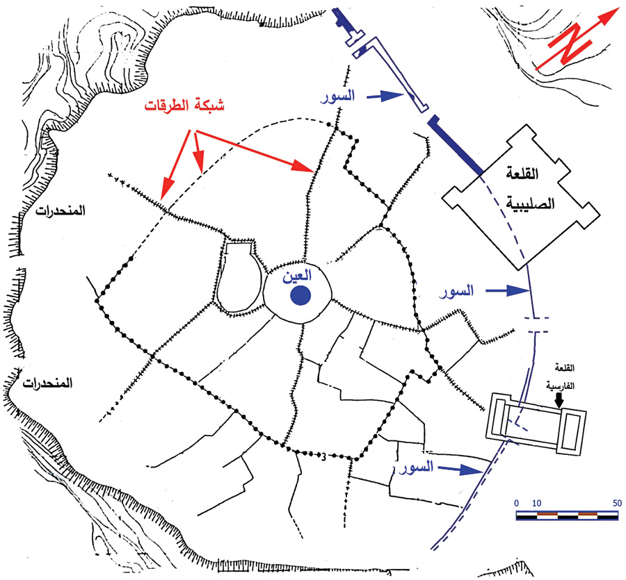 شُيّد السور على خطوط القمم المحيطة بالمدينة من الجهتَين الشمالية والشرقية مشرفًا بذلك على داخلها وعلى محيطها الخارجي. سمحت هذه الميزة للمدافعين بمراقبة الأخطار المحدقة الآتية من خارجها وحجب الرؤية من هناك إلى الداخل. سيختار الفرس بعد نحو 2500 عام والصليبيون بعد نحو 4200 عام الموقع ذاته لبناء قلعتيهما، وهذا دليل مادي قوي على براعة الجبيليين في التخطيط العسكري­.