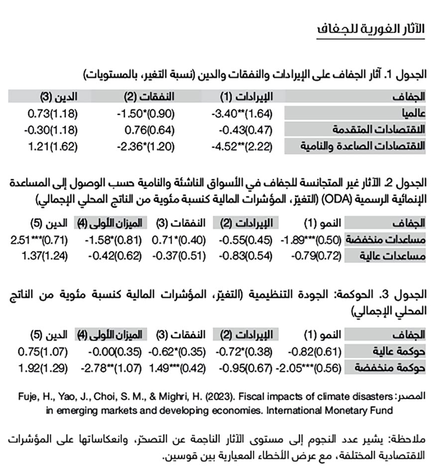 3- Fuje, H., Yao, J., Choi, S. M., & Mighri, H. (2023). Fiscal impacts of climate disasters in emerging markets and developing economies. International Monetary Fund.